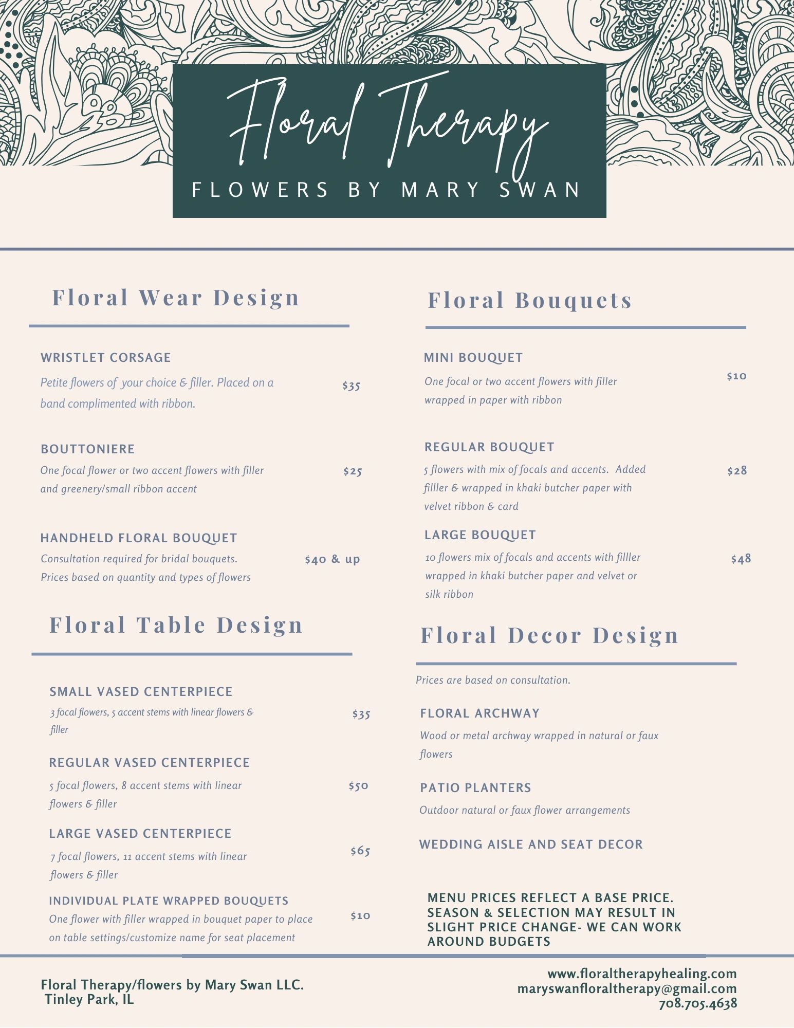 I have poured my heart into every step of success in Floral Therapy/flowers by Mary Swan LLC. With a dream and dedication, I can proudly say that I look at a line of customers at my bloom bar and have created repeat-valued customers. This business is more than flowers wrapped in paper.
